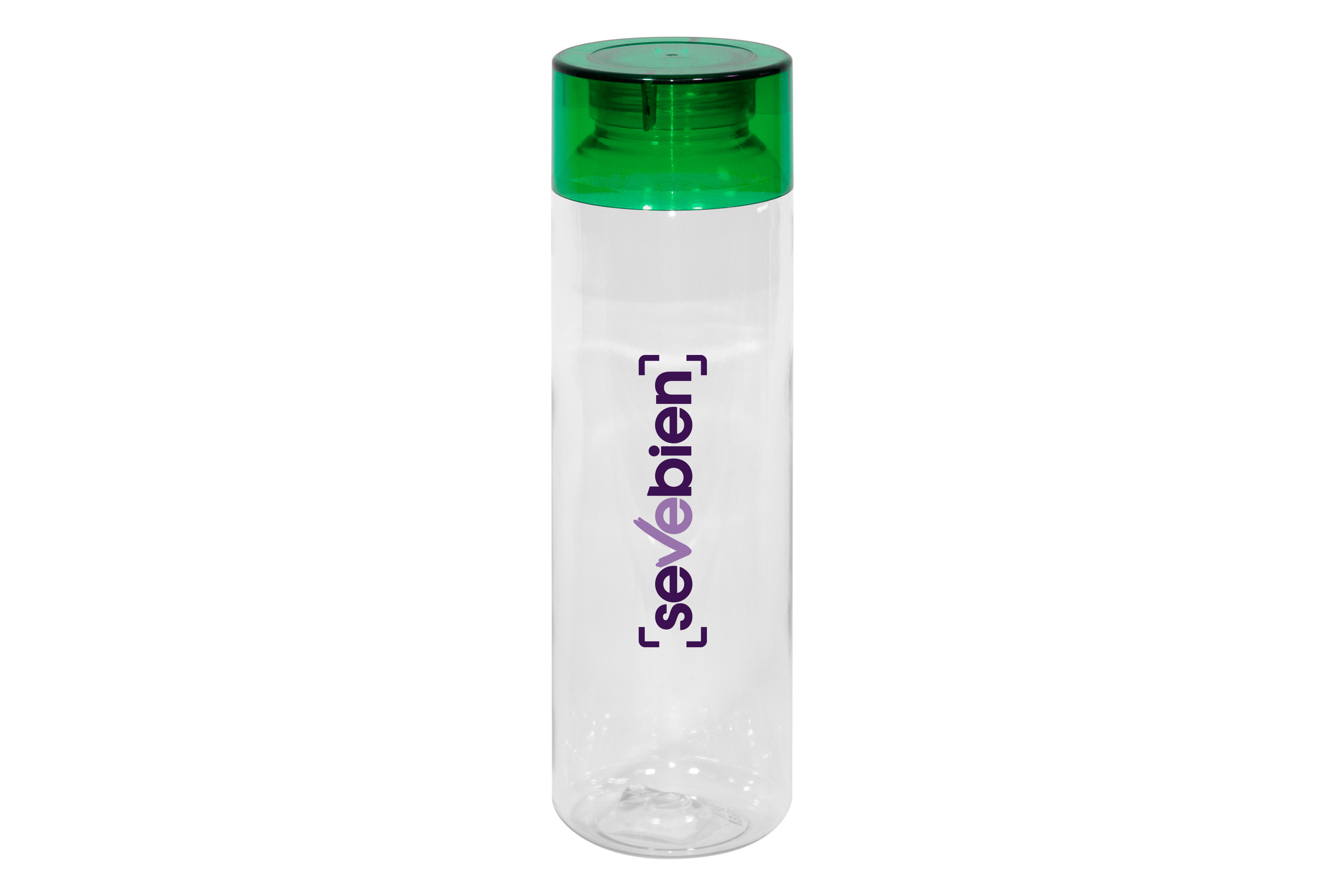 Botella de plástico transparente con tapa a rosca plástica.