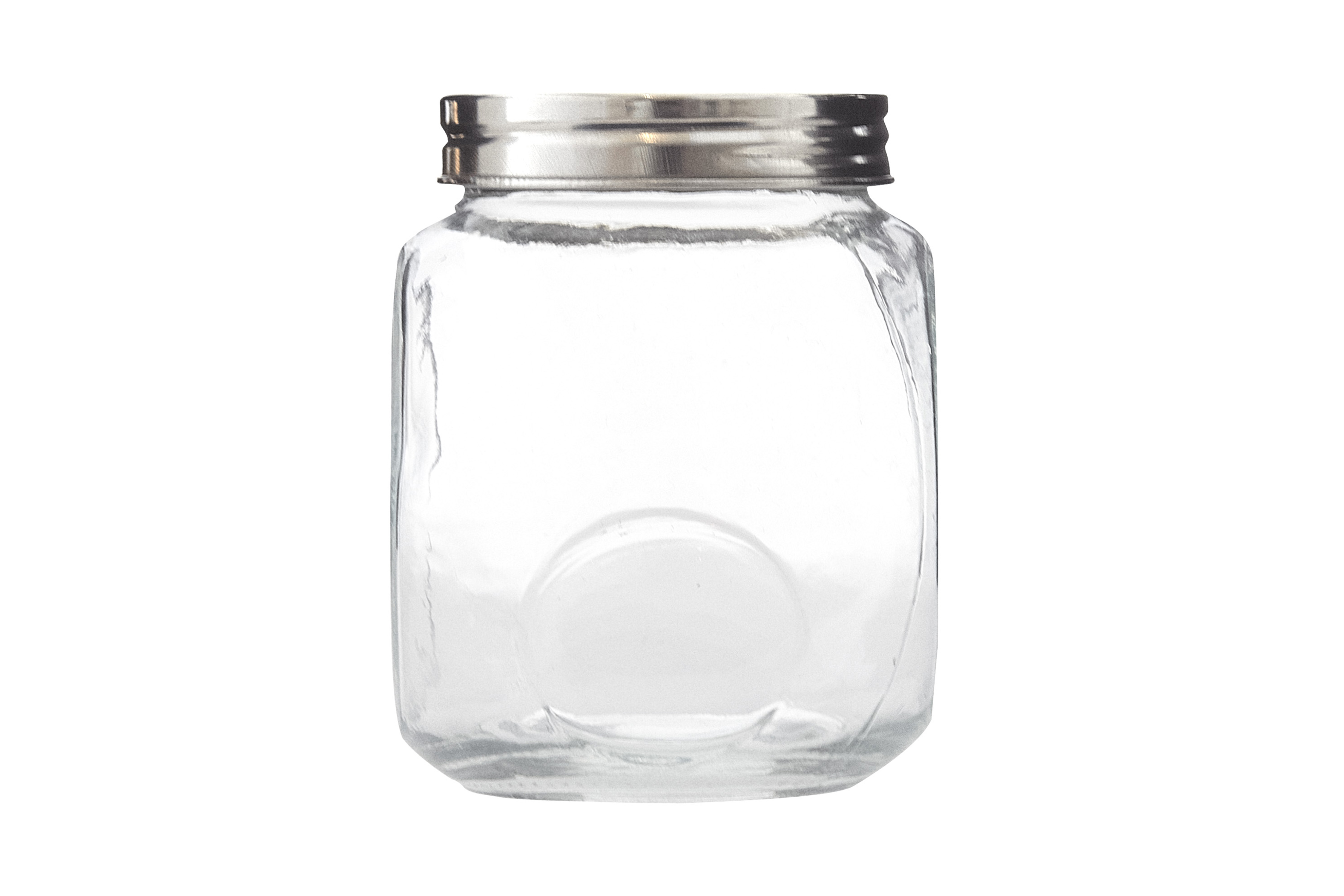 10,5 x 7 cm. Vidrio y acero inoxidable. Capacidad 480 ml. Frasco de vidrio con base que permite apoyarse en dos posiciones.