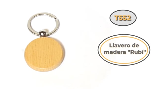 Ø 3,1 x 0,5 cm. (La medida no incluye el aro). Madera. Llavero redondo con aro metálico.